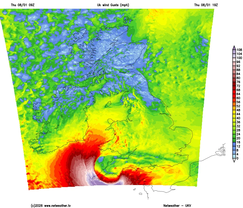 Further updates from the Met Office confirm that this has now escalated to a red weather warning, meaning both the impact and likelihood of disruption are high. Forecasts indicate gusts of 80–100mph or more, with violent gusts expected to persist for 2–3 hours in exposed areas. Gusts of up to 100mph are now being mentioned as a possibility, with reports of violent gusts lasting for sustained periods of 2–3 hours.
